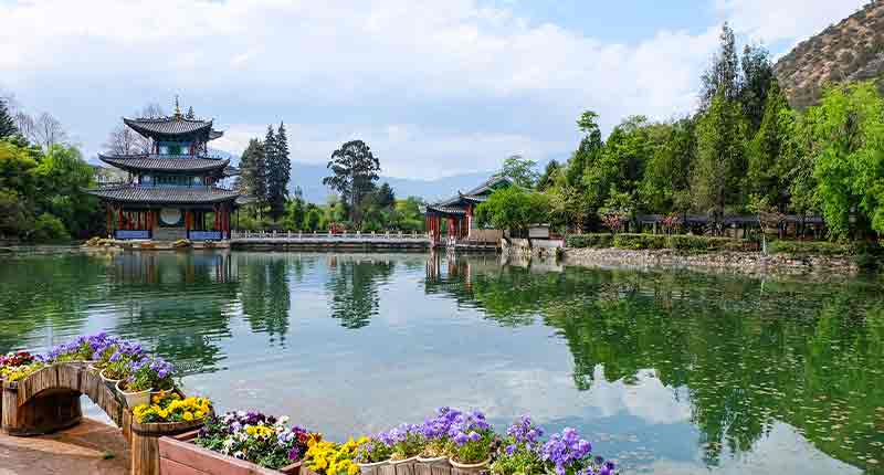 - Transfer to Lijiang Ancient Town, and en route visit to Black Dragon Pond Park, a perfect photo spot of the Jade Dragon Snow Mountain with reflection in the Pond.