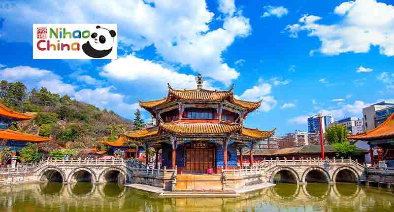 - Located at the west bank of the Dianchi Lake of Kunming, amid mountains and well covered by evergreen woods.