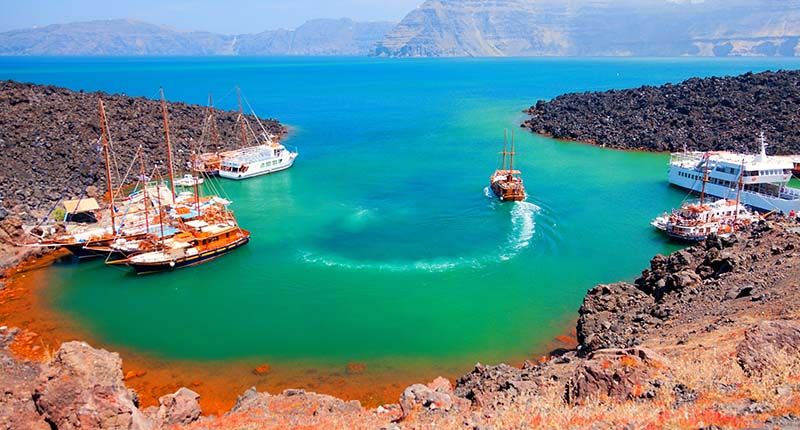 - The first stop of the excursion is the volcano of Santorini on Nea Kameni Island!
