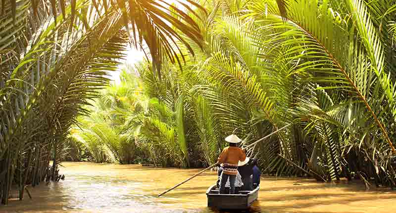Morning departure from Ho Chi Minh City for a 1.5-hour drive to My Tho Province, passing through lush rice paddies and fruit farms.