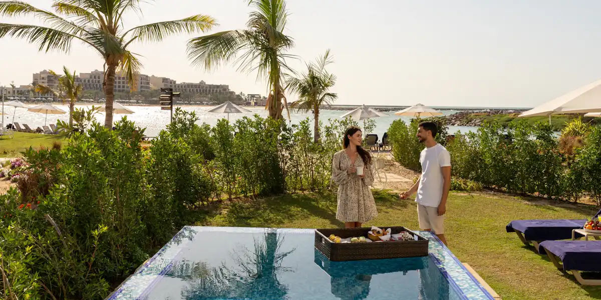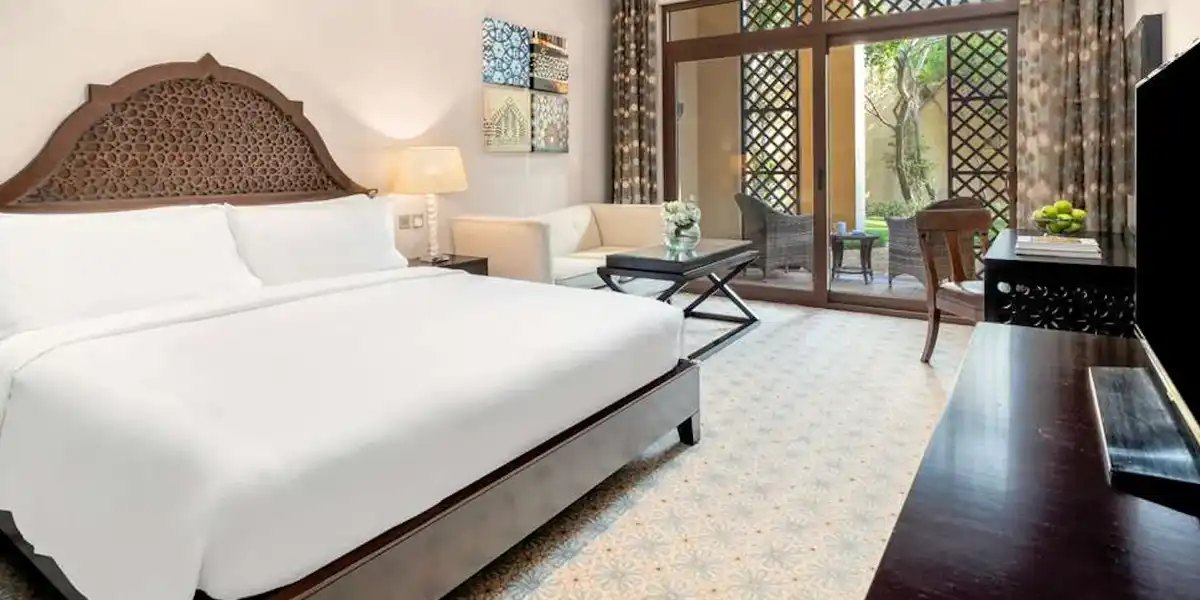 Enjoy a tranquil beachfront escape at JA Palm Tree Court, with its peaceful setting and family-friendly vibe. Stay in a comfortable Garden View Junior Suite designed for a relaxing family getaway. The suite overlooks lush gardens and provides spacious interiors, ideal for 2 adults and 1 child (up to 5 years old). With peaceful surroundings and resort amenities, it is perfect for a calm and enjoyable Dubai staycation. Book with Travelwings today!