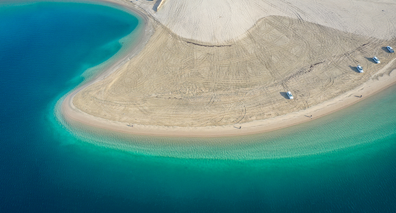 - Continue to the unique Inland Sea (Khor Al Adaid), where the desert meets the azure waters.