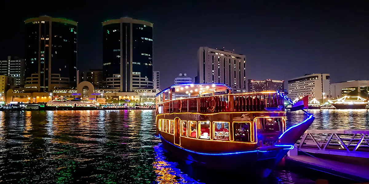 Enjoy the buffet dinner while staying afloat in the traditional boat. Listen to Arabian music as much on luscious delicacies and savour the dazzling views of Dubai skyscrapers.