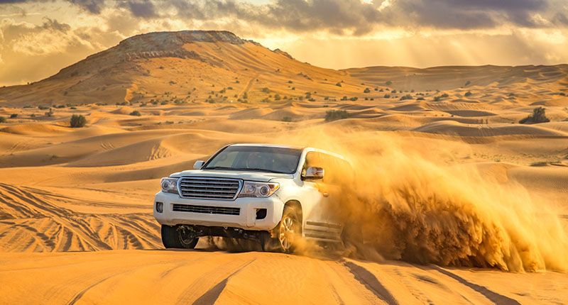 • (En option) incontournable pour tous les visiteurs des Emirats Arabes unis. Un souvenir à partager avec votre famille et vos amis dès votre retour. Nous le recommandons vivement et il vaudra chaque centime dépensé ! Au cours de cette excursion dans le merveilleux désert de Dubaï pour premier arrêt est prévu dars ure ferme de chameaux avant de continuer l'aventure au milieu des dures et de s'arrêter pour regarder le coucher du soleil.