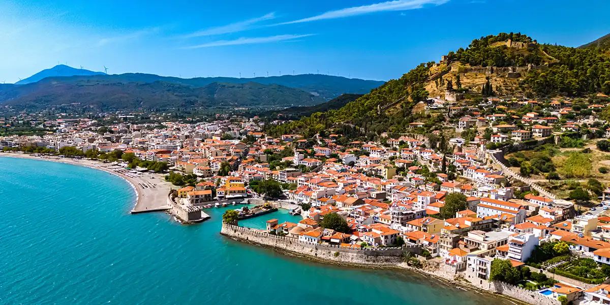 Our first stop is Nafpaktos, located on the Gulf of Corinth. Its Venetian fortress overlooking the city is a reminder of its historical significance as Lepanto, where the Christian and Turkish fleets clashed in battle—a conflict during which the famous Cervantes lost his arm.