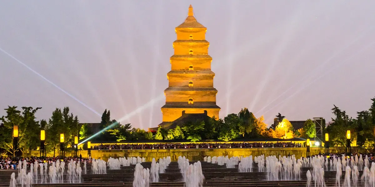 Photostop at City Wall. Visit Big Wild Goose Pagoda Square with Fountain Show