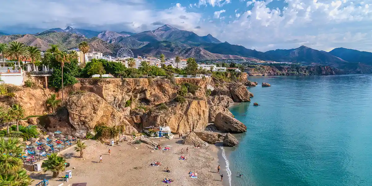 Stop in Nerja, a charming seaside town with impressive cliffs.