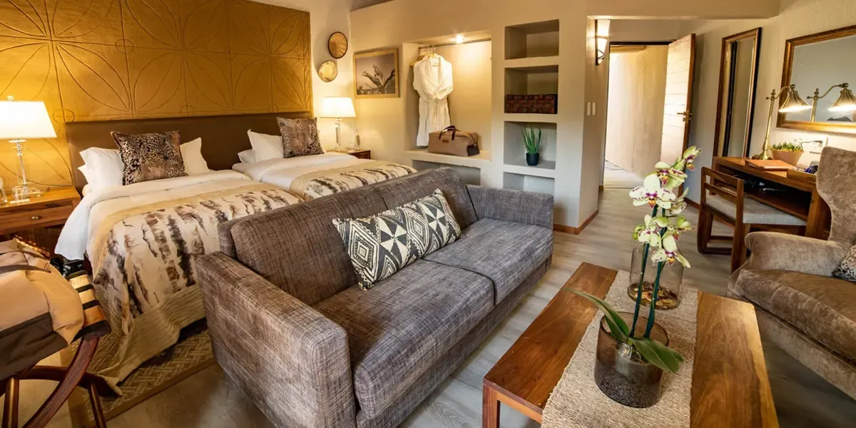 This luxury safari for 3 nights at Mabula Game Lodge offers a rare opportunity to immerse yourself in South Africa’s rich bushveld, including a three-night stay in a Superior Room. The package includes daily breakfast, lunch, and dinner, offering a complete dining experience throughout their stay. The adventure continues with two safari game drives each day, to witness the incredible wildlife up close. In addition, you can participate in on-site lodge activities (depending on availability), making the experience even more memorable. With Travelwings, this unforgettable safari adventure brings you closer to the raw beauty of Africa, where luxury meets the untamed wilderness.