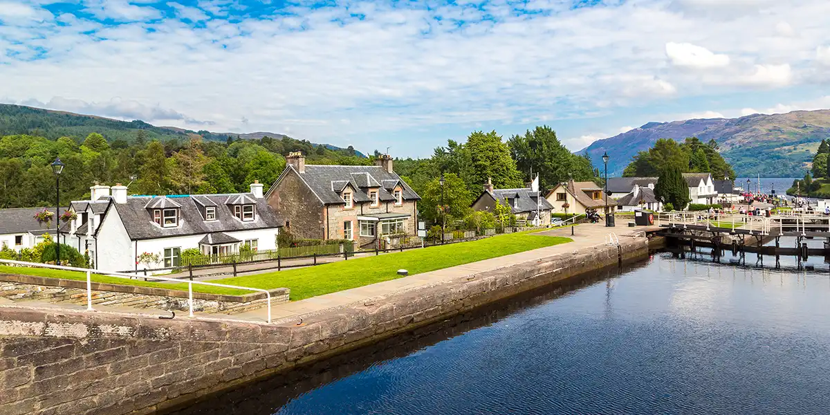 Pass through Fort Augustus, known for its canal locks, and Fort William, located at the foot of Ben Nevis, the highest mountain in the UK.